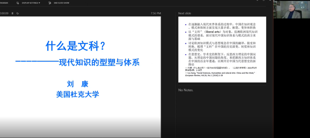 12月18日上午,欧洲科学院外籍院士、美国杜克大学中国研究中心主任刘康教授受邀为南航师生做了题为“什么是文科?——现代知识的形塑与体系”的线上讲座。本讲座由国际合作处和永利集团88304官网共同组织。永利集团88304官网327设置线下会场,线上线下同步进行,共有100多位师生参加,讲座由外院副院长姜礼福和学院国际交流中心主任刘世红联合主持。